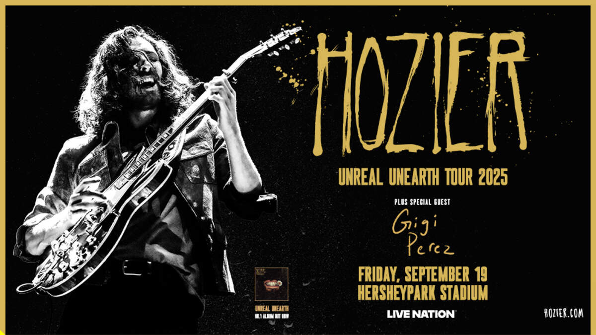 We are happy to welcome Hozier-'Unreal Unearth Tour 2025' with special guest Gigi Perez coming to the Hersheypark Stadium in Hershey PA on Fri September 19th!